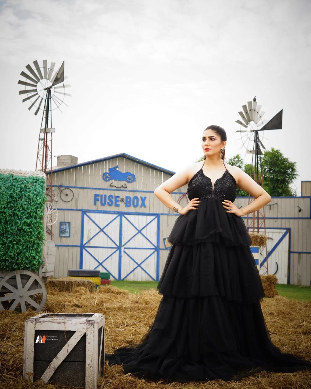 ब्लैक कलर की बैकलेस गाउन में सपना कहर ढाती नज़र आ रही हैं। तस्वीर में वह एक जीप के पास खड़ी पोज दे रही हैं।