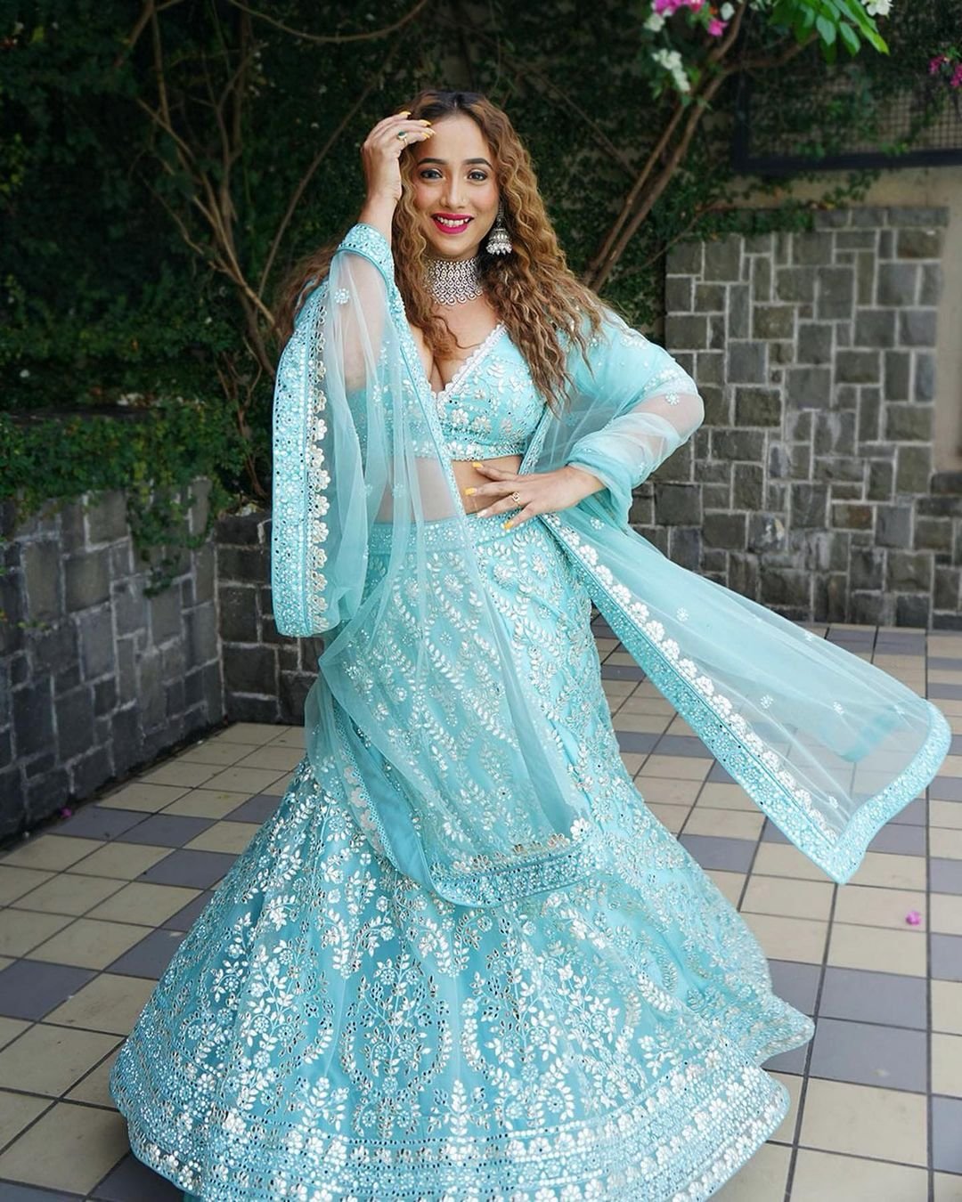 रानी ने अपने लुक को हैवी नेकलेस और बड़ी ईयरिंग्स के साथ कंप्लीट किया है। उनकी तस्वीरें सोशल मीडिया पर काफी वायरल हो रही हैं।