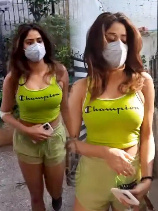 इन फोटोज़ में जान्हवी कपूर नियॉन कलर के टॉप और लाइट ग्रीन शॉर्ट्स में स्पोर्टी लुक में नजर आ रहीं हैं।